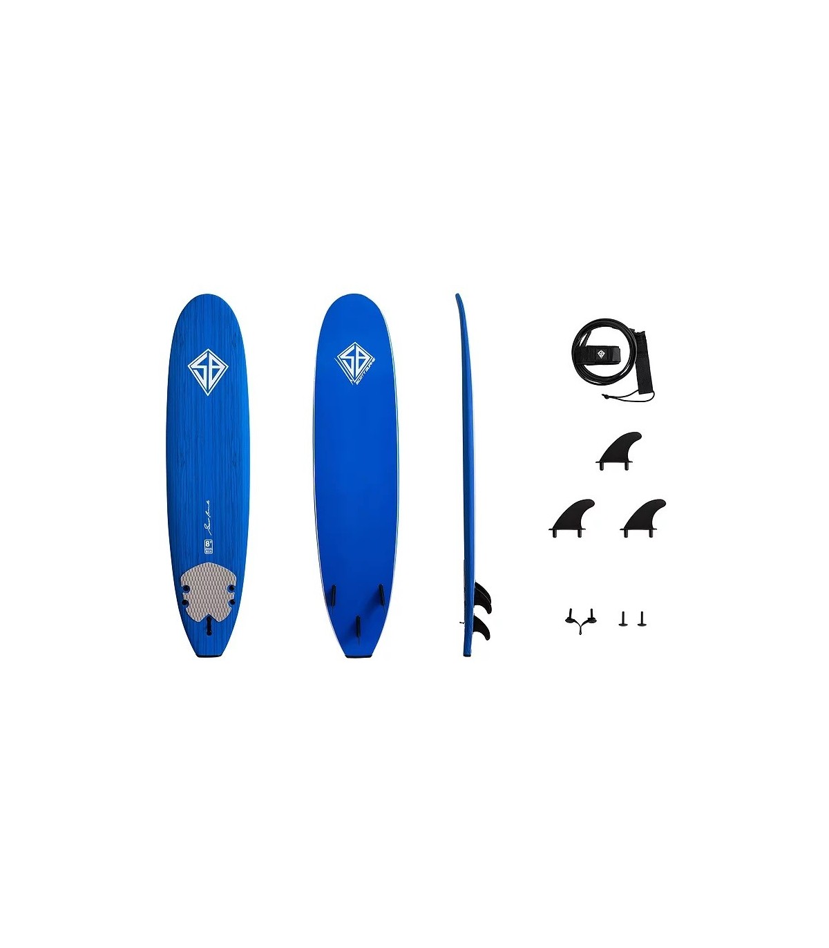 El surf Scott Burke de 8 'tiene un núcleo de espuma EPS con 3 almas de madera laminada para un núcleo estructurado pero flexible y liviano. La cubierta de XPE / IXPE proporciona una textura que permite agarrar más facilmente la tabla que una tabla de surf de fibra de vidrio. Un deck pad ya viene adjunto en le tail para brindar ayuda adicional para el equilibrio y el control una vez que esté surfeando. Se entrega con un leash / invento de PU para surf para no perder su tabla entre las olas.